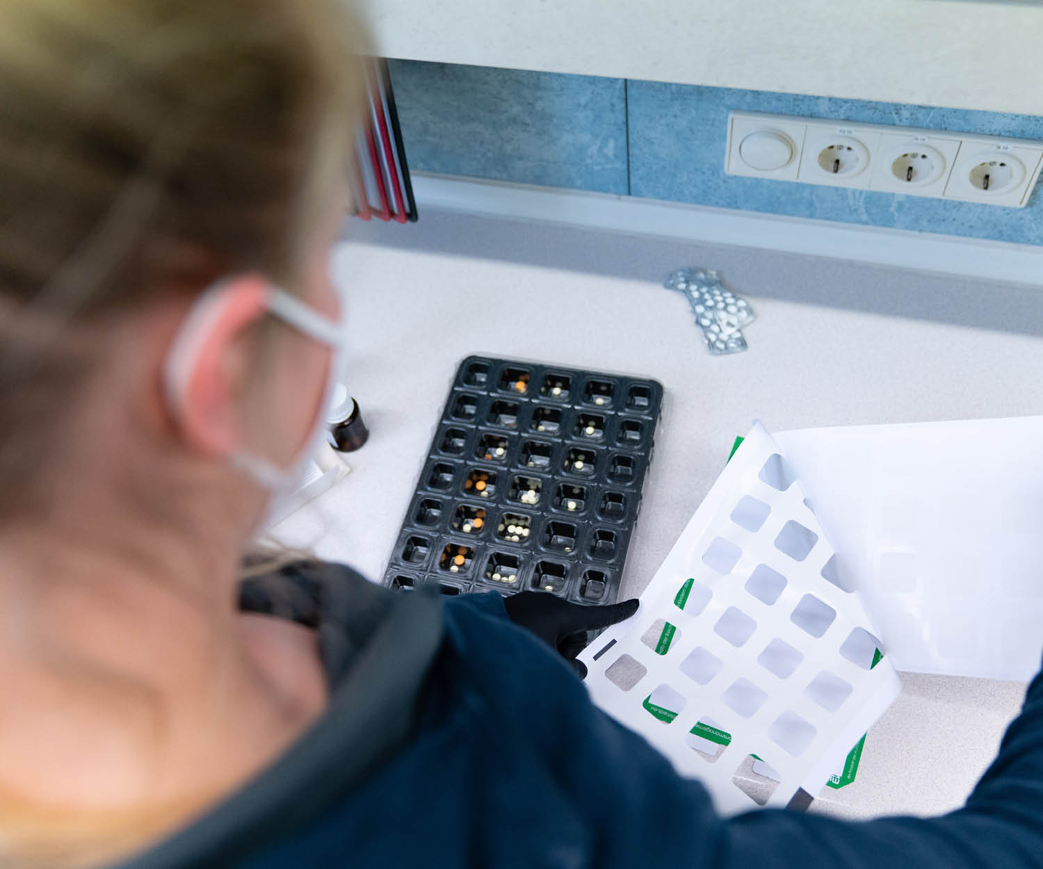 Unsere Moosloh Apotheke verfügt über eine eigene Heimabteilung mit jahrzehntelanger Erfahrung in der Medikamenten-Versorgung von Alten- und Pflegeheimen sowie Pflegediensten. In enger Abstimmung mit Pflegekräften und beteiligten Ärzten garantieren wir eine effektive und sichere Arzneimittelversorgung. Zentraler Baustein ist die maßgeschneiderte Verblisterung: Übersichtlich, exakt mit Einnahmezeiten beschriftet, liefern wir die höchst individualisierten Blister wöchentlich in Ihre Einrichtung.