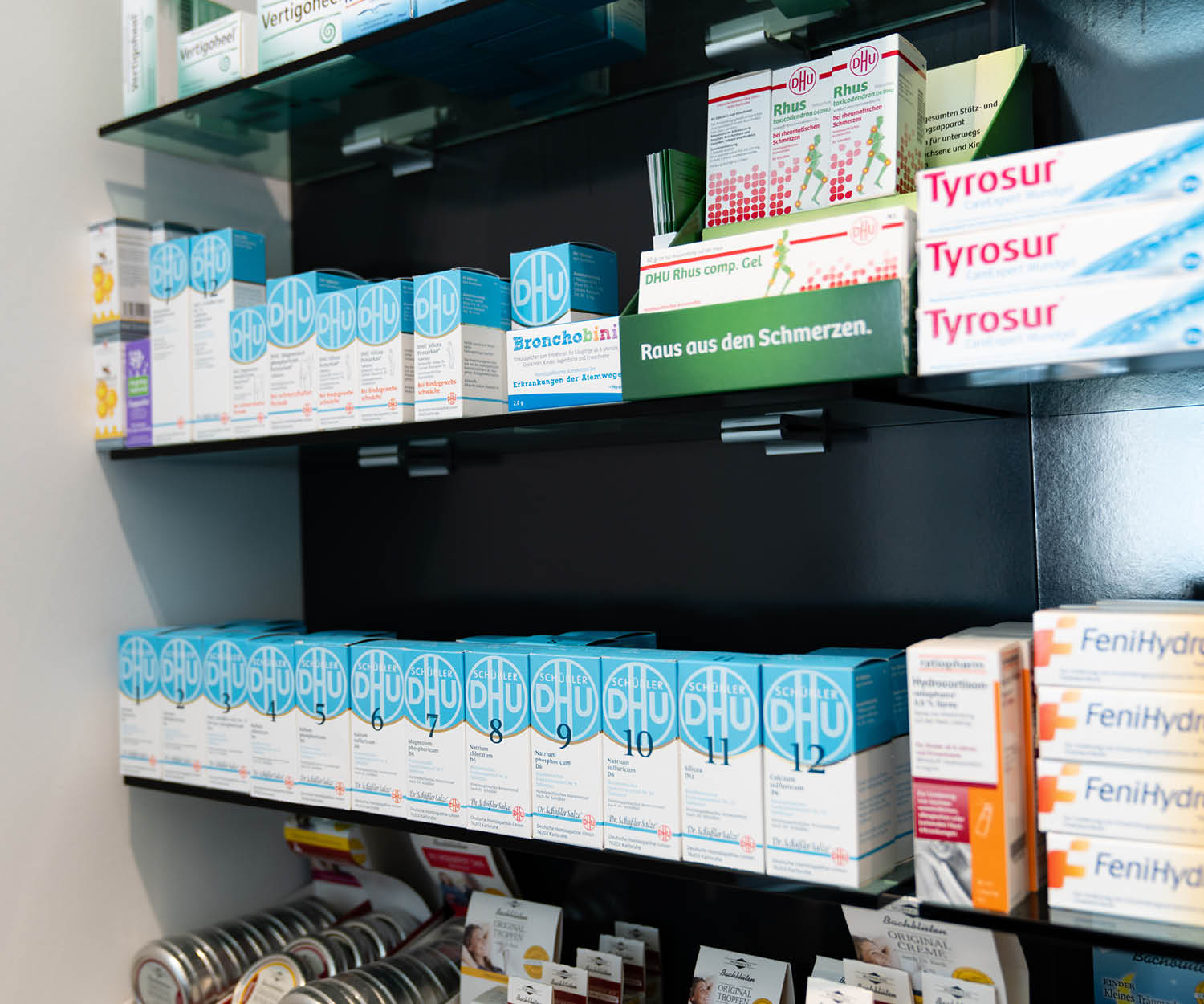 In unserer Moosloh Apotheke bieten wir Ihnen eine große Auswahl an homöopathischen Produkten. Sie finden sowohl klassische wie auch moderne Mittel der Homöopathie direkt in unserer Apotheke vor Ort oder in unserem Online-Shop. Das Anwendungsspektrum für homöopathische Mittel ist groß, es reicht von Schlafstörungen über Hautprobleme bis hin zu Magen-Darm-Beschwerden. Besondere Globuli oder Tropfen besorgen wir Ihnen gerne innerhalb kurzer Zeit.